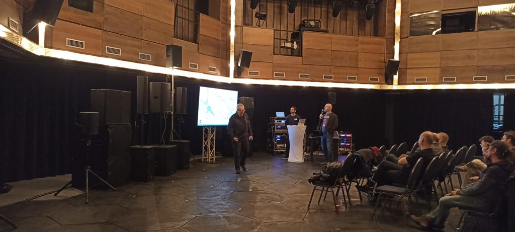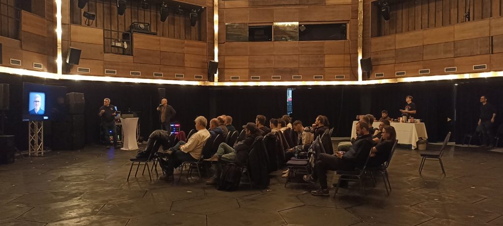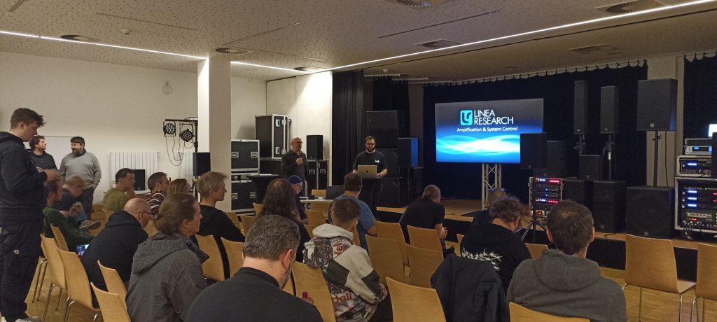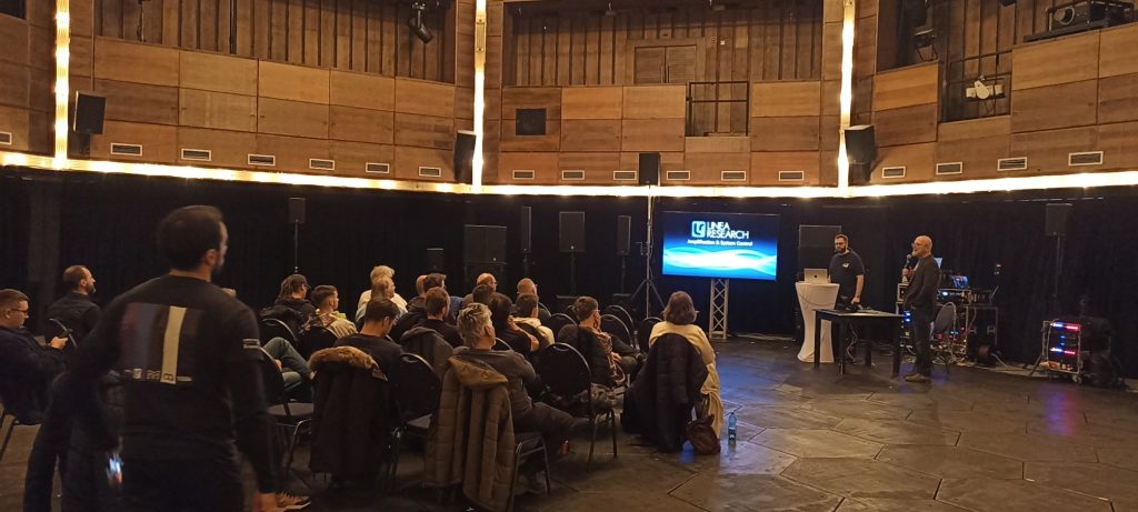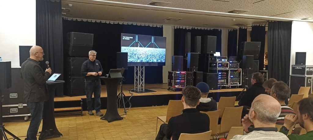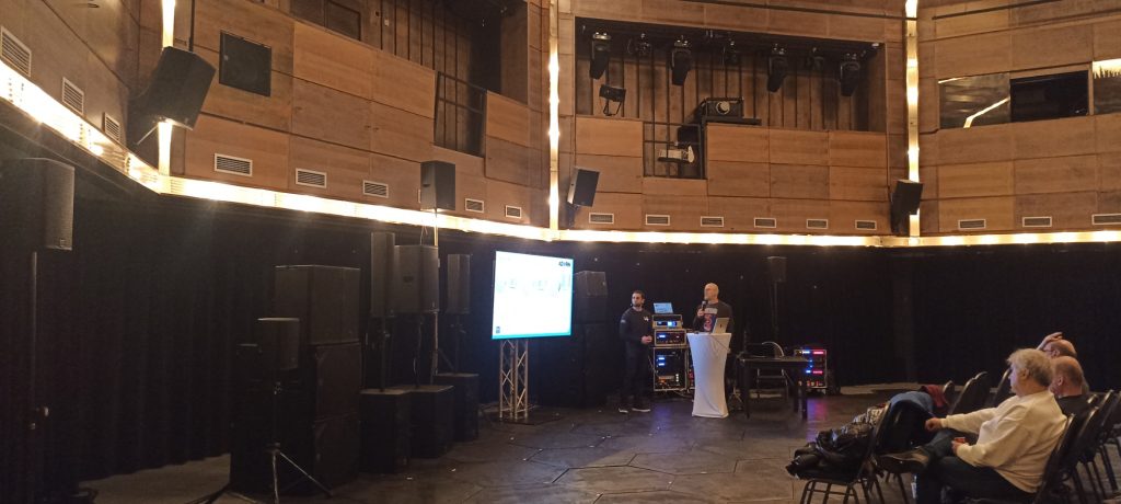 - Spoznali sme software Panlab a Soundhub, ku ktorým boli odprezentované živé konfigurácie priamo na priestorovom zvuku v sále, na týchto +bolo vidieť jednoduchosť nastavenia a význam immersive audia.